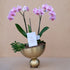 Çift dal pembe orkide ve kaktüslerle bronz ball vazo ile dekore edilmiştir.