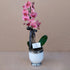 Tek kök tek dal en özel renklerimize sahip orkidemiz gümüş detaylı beyaz vazo ile dekore edilmiştir.